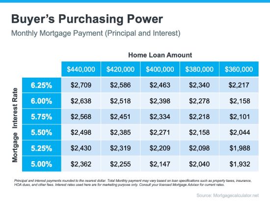 That’s because when rates go up (as they have for the majority of this year), they impact how much you’ll pay in your monthly mortgage payment, which directly affects how much you can comfortably afford. The inverse is also true. A decrease in mortgage rates means an increase in your purchasing power.